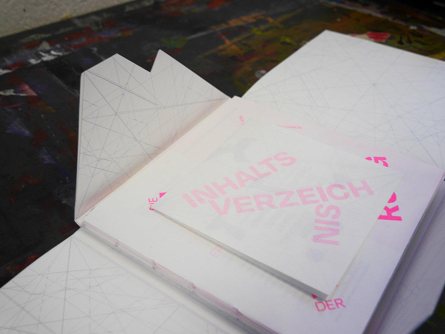 in a new context: each episode is symbolized by an appropriately chosen origami figure. This figure can be recreated at the end of each episode with the help of an enclosed folding sheet and instructions. If you unfold the finished figure again, the resulting folding pattern appears as the layout grid used in the episode. The result is a chaotic and jumbled design at first glance, but one that – using the origami folds – has been realized in a controlled manner.
