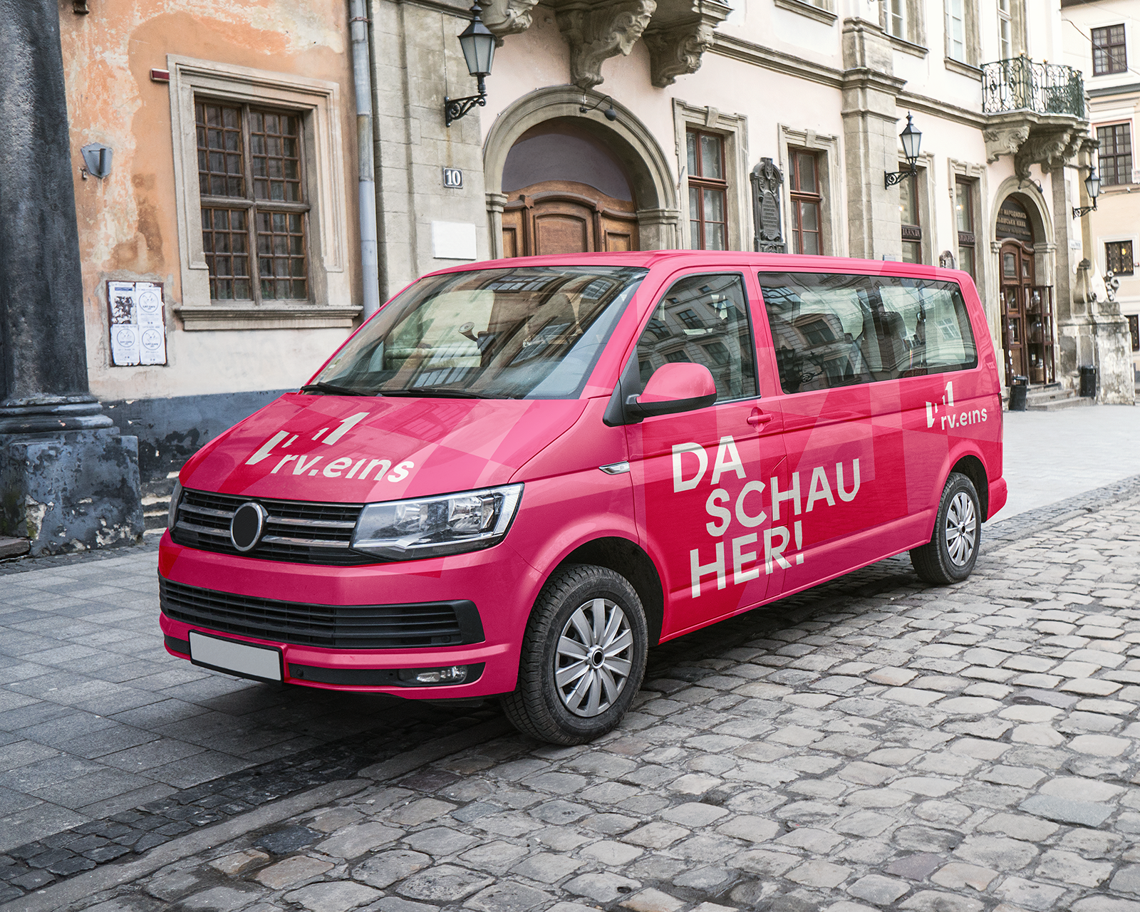 Based on these findings, a visual system including a brand guideline was created for the fictitious Ravensburg television broadcaster rv.eins. The aim is to create an appearance that is as consistent and harmonious as possible.
